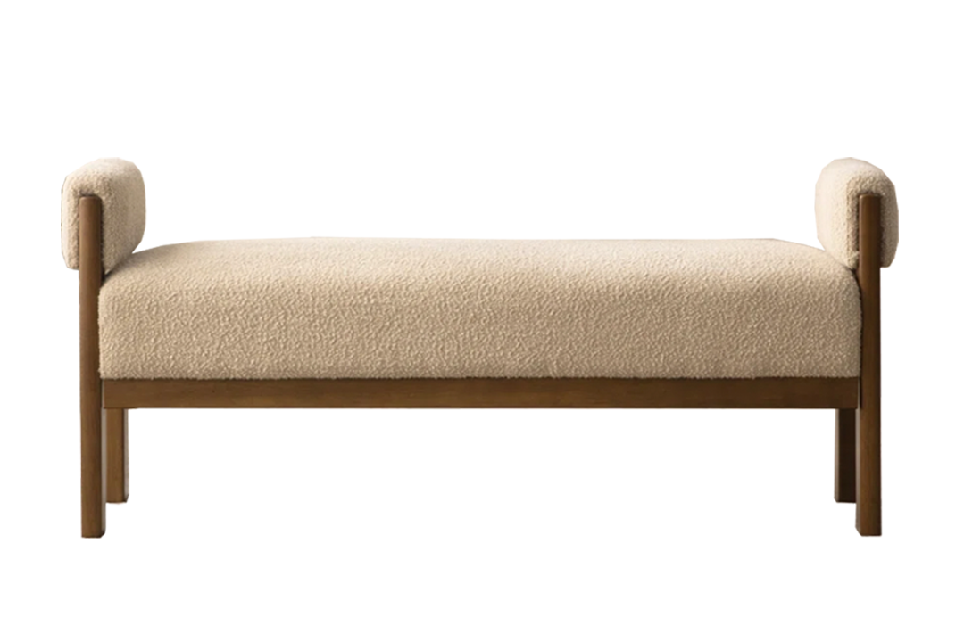 This bench is one of my all-time favorite purchases! I mean, how can you go wrong with warm wood and a soft boucle fabric at the end of your bed?? And the arms…. BEST PURCHASE FOR THE MONEY!